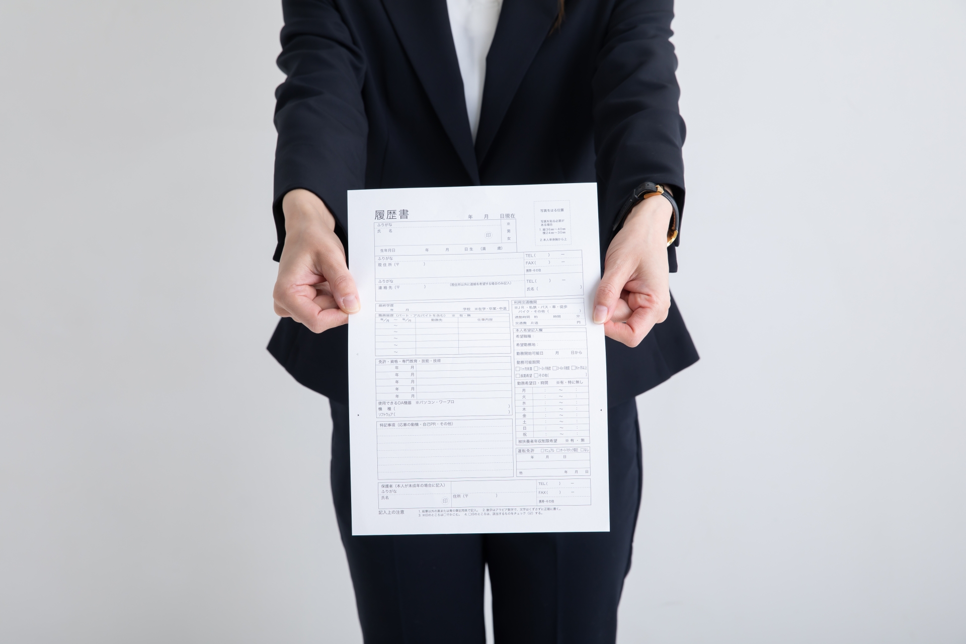 履歴書は、必ず表面を上にして渡します。相手が履歴書を受け取った後、表面を確認しやすいように配慮しましょう。この小さな気配りが、印象を大きく左右します。