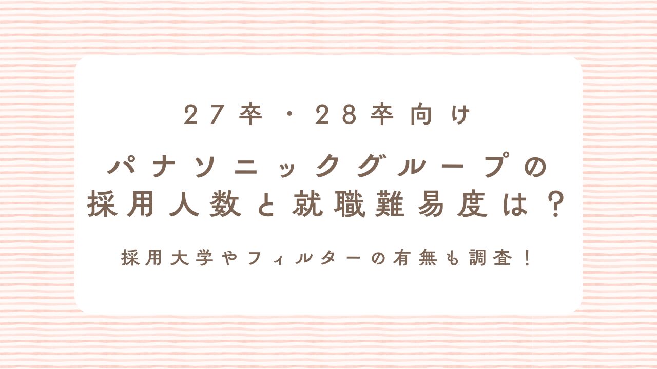 27卒・28卒でパナソニックグループを志望する就活生に向け、本記事ではパナソニックグループの採用人数の実態、就職難易度の水準、採用大学の傾向、学歴フィルターの有無について詳しく解説します。日本を代表する総合電機メーカーグループとしての特徴を踏まえ、選考を突破するために押さえるべきポイントも体系的に整理します。加えて、Webテストや自己分析の準備にはLognavi(ログナビ)を活用した効率的な進め方にも触れ、27卒・28卒の就活生が早期から戦略的に対策を進められる内容になっています。