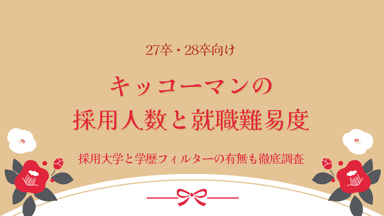 27卒・28卒でキッコーマンを志望する就活生に向けて、キッコーマンの採用人数の実態、就職難易度の評価、採用大学の傾向、学歴フィルターの有無について詳しく解説します。食品業界のグローバル企業として知られるキッコーマンの採用動向と選考対策を体系的に整理しました。