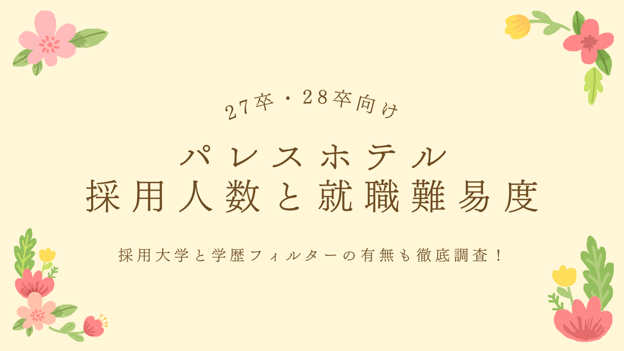ご紹介の通り、パレスホテルの新卒採用は毎年非常に高い関心を集めており、ホテル・サービス業界の中でも志望者が多い人気企業のひとつです。
