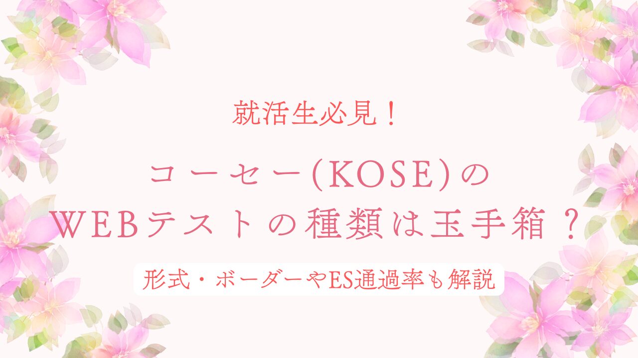 コーセー(KOSE)の選考では、エントリー初期にWEBテストが課され、その出来が書類選考の合否を左右します。テスト形式が玉手箱なのか、出題内容やボーダー、ES通過率はどの程度なのか気になる方も多いでしょう。本記事では、各種就活サイトの情報をもとに、コーセーのWEBテストの実態と効果的な対策を整理して解説します。