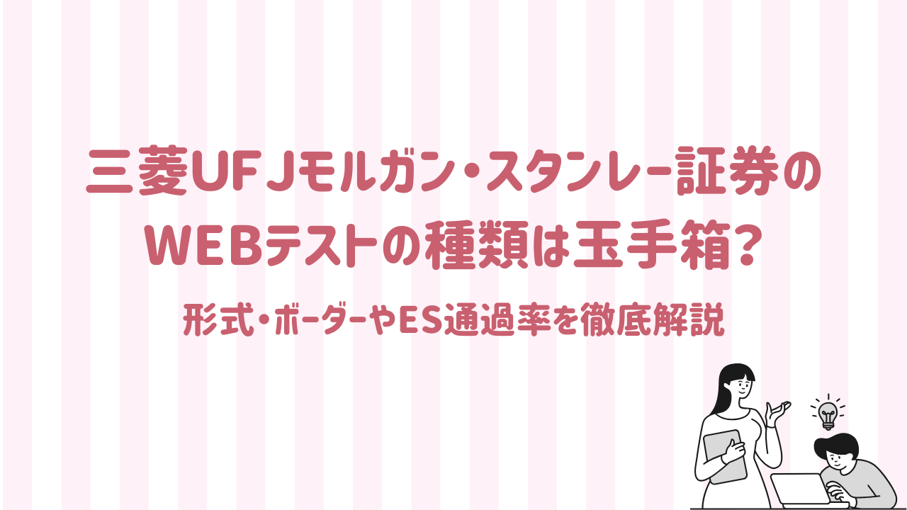 三菱UFJモルガン・スタンレー証券の選考では、エントリー初期にWEBテストが実施され、ESとあわせて書類選考の合否を左右します。形式は玉手箱なのか、ボーダーやES通過率はどの程度か。本記事で実態と対策を整理します。
