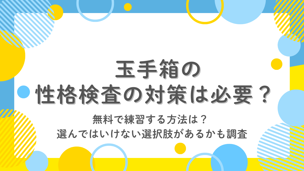 玉手箱の性格検査は「正解がない」「対策不要」と言われがちですが、実際には選考でどう使われるかを理解しておかないと、面接で思わぬズレが生じることがあります。本記事では、玉手箱の性格検査の目的や仕組みを整理し、対策は本当に必要なのか、無料でできる練習方法や「選んではいけない選択肢」があるのかを詳しく解説します。