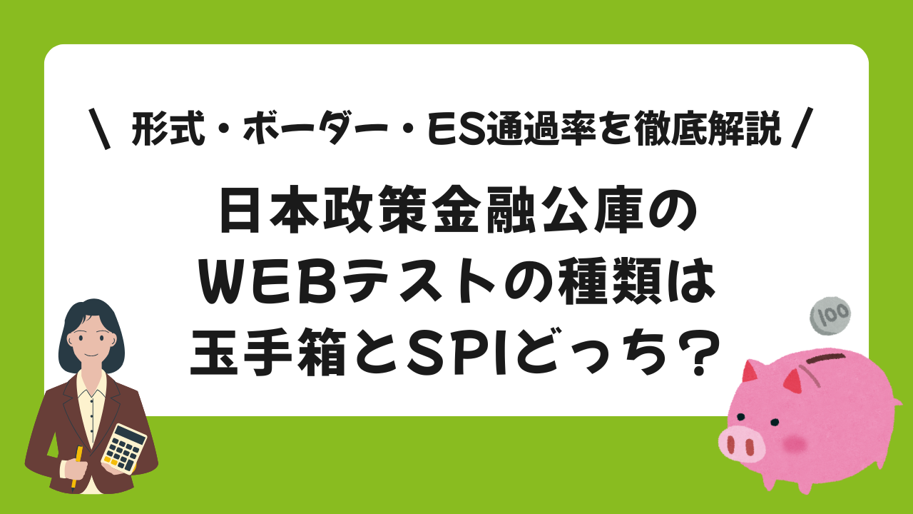 日本政策金融公庫(JFC)は中小企業や個人事業主への融資を担う100%政府出資の金融機関であり、安定した就業環境から就活生に人気があります。その選考では書類審査に続いてWEBテスト(適性検査)が課され、ここでの高得点獲得が次の面接ステップへの鍵となります。本記事では、日本政策金融公庫のWEBテストが玉手箱形式かSPI形式か、実際の出題内容・形式、合格ライン、さらにES通過率について詳しく解説します。