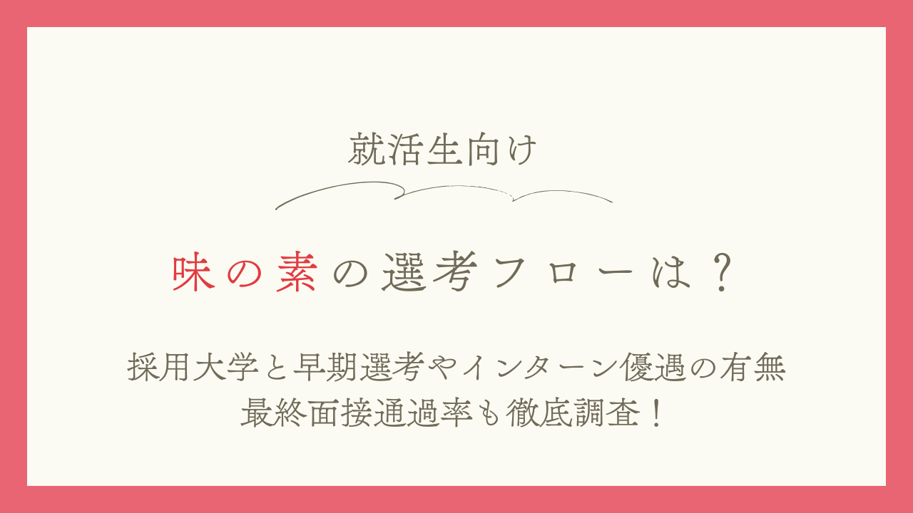 味の素の採用選考の大まかな時期感は以下の通りです(年度によって変動する可能性あり)。