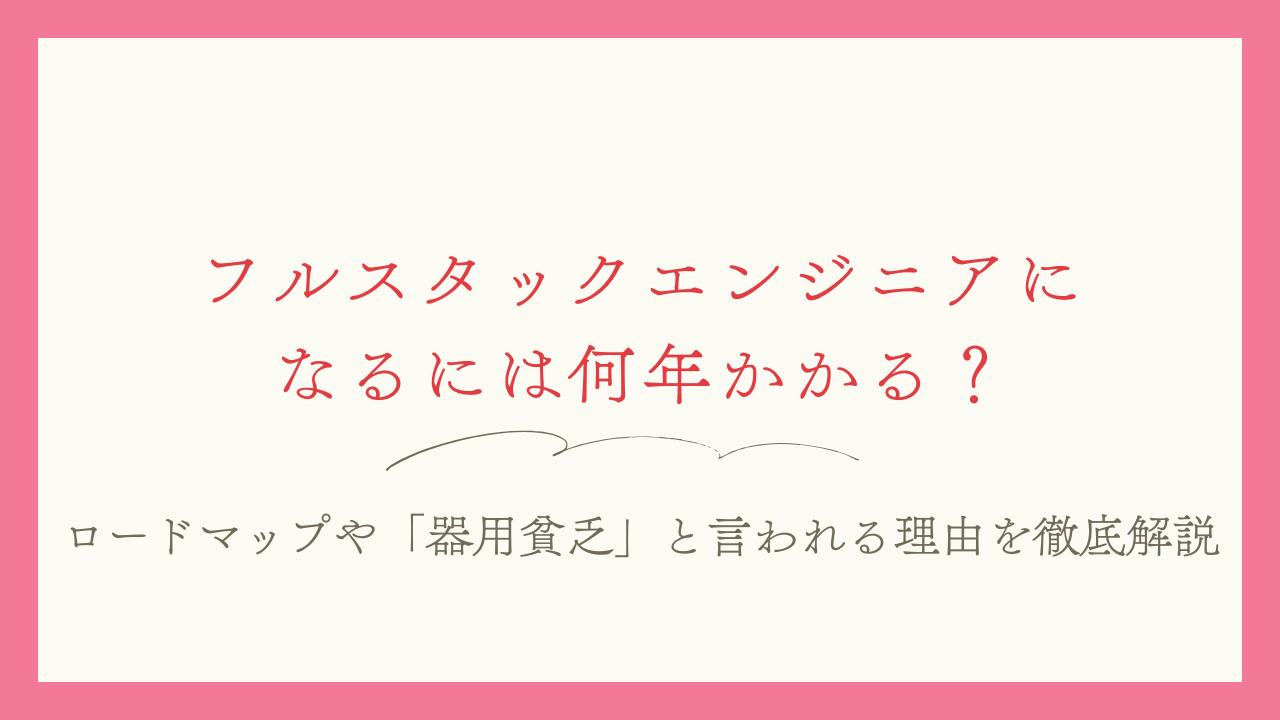 フルスタックエンジニアになるまでの期間は、未経験からの場合で3〜5年程度が一つの目安です。ただし学習時間や環境によって差があり、集中して学べる人であれば1〜1.5年で主要スキルを習得するケースもあります。一方、十分な学習時間を確保できない場合は5年以上かかることもあります。「6ヶ月でフルスタック」といった極端に短い期間は現実的ではありません。
