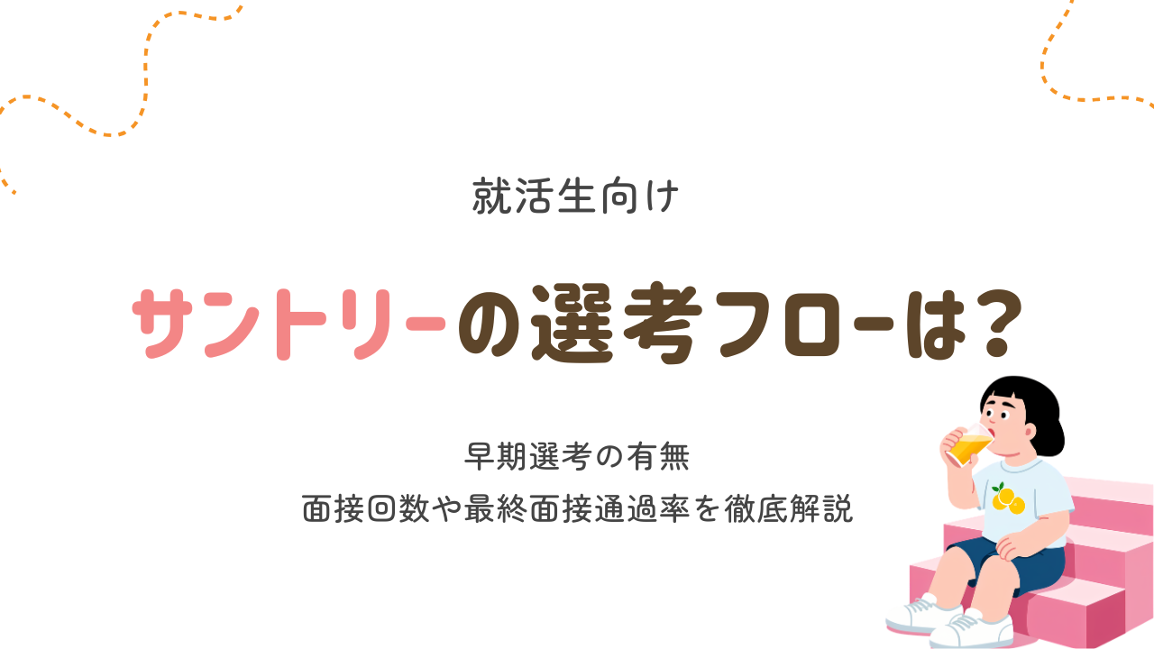 サントリーホールディングス(サントリー)は飲料・酒類業界で常に人気上位の企業で、多くの学生が志望します。本記事ではサントリーの新卒採用における選考フローを中心に、早期選考の実態、面接回数、最終面接通過率などを解説します。各段階で求められるポイントや対策も整理するので、選考準備に役立ててください。