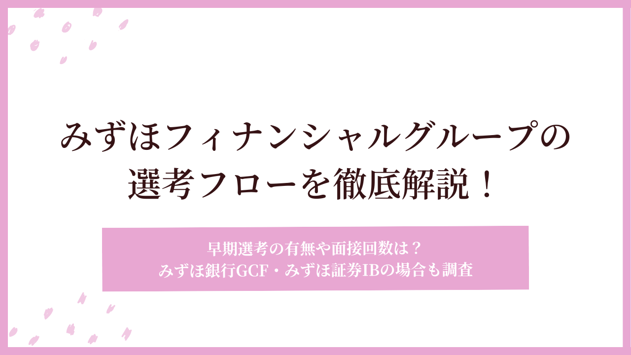 みずほフィナンシャルグループは、銀行・信託・証券を一体運営する「One MIZUHO」戦略のもと、国内外で幅広い金融サービスを展開する日本有数の金融グループです。人気企業のため選考倍率も高く、事前の対策が重要になります。本記事では、みずほの新卒採用における選考フローや面接回数、専門コース(GCF・IB)の選考ポイントまで分かりやすく解説します。
