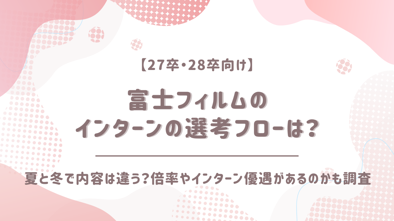 【27卒・28卒向け】 富士フィルムのインターンの選考フローは?夏と冬で内容は違う?倍率やインターン優遇があるのかも調査