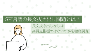 SPI言語の「長文抜き出し」は、本文から根拠を正確に拾うタイプの読解問題です。本記事では出題形式と解き方、出ない場合の対策、さらに長文抜き出し問題が出る場合には正答率が高い所謂高得点指標に該当するのかどうかについても徹底解説します。1. S...